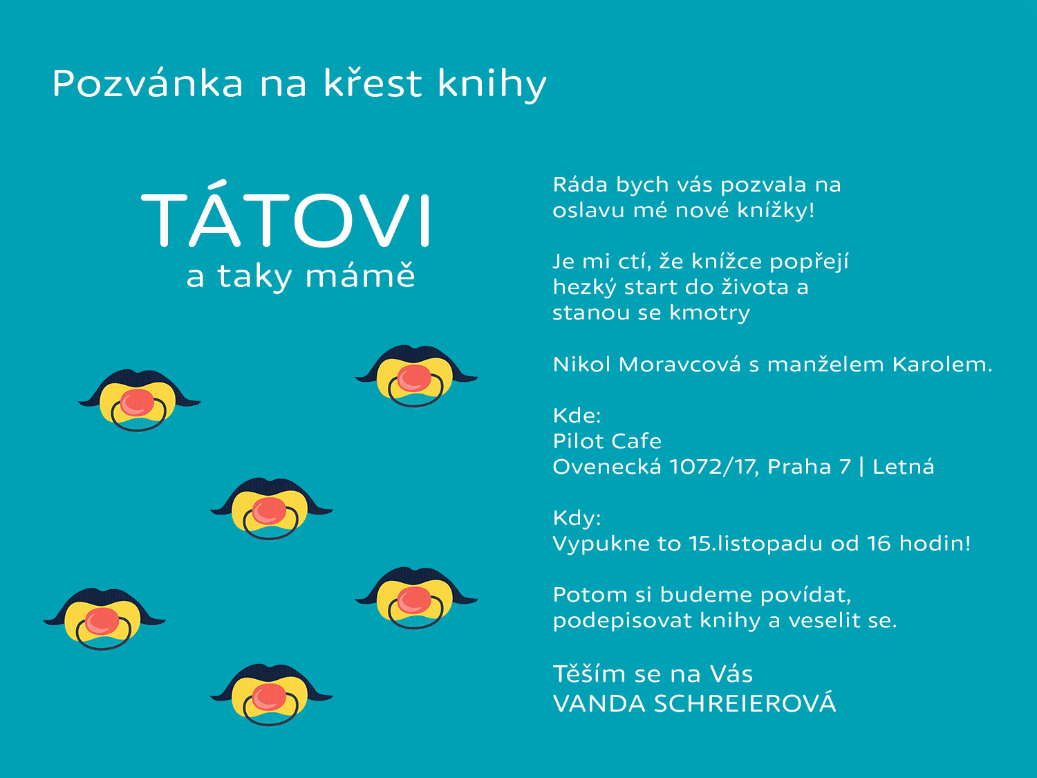 Ráda bych vás srdečně pozvala na křest mé nové knihy Tátovi a taky mámě.